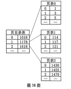 某计算机系统的主存按字节编址,逻辑地址和物理地址都是32位,其内存管理采用两级页表的分页存储管理方式。逻辑地址中页号为10位,页内偏移地址为12位。该计算机系统的两级页表结构如题38图所示,图中数值均为十进制数。