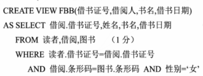 某图书管理系统数据库中包含三个关系:图书(条形码,书名,作者姓名,出版社,单价)读者(借书证号,姓名,性别)借阅(借书证号,条形 作者:高老师 时间:2024-07-27 浏览 0 某图书管理系统数据库中包含三个关系:图书(条形码,书名,作者姓名,出版社,单价)读者(借书证号,姓名,性别)借阅(借书证号,条形码,借书日期,还书日期)实现下列操作:使用SQL语句建立“女”读者借阅图书的视图FBB,该视图包括信息:借书证号,借阅人,书名,借书日期。【正确答案】: 📱 扫码体验刷题小程序 扫一扫使用我们的微信小程序