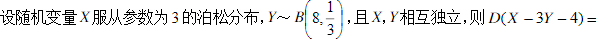 ———— 作者:高老师 时间:2024-07-28 浏览 2 ————【正确答案】:19【题目解析】:(1)泊松分布E(X)=D(X)=λ,其中λ为参数;故本题,D(X)=3(2)二项分布Y~B(n,p),则E(Y)=np;D(Y)=np(1-p)故本题,D(Y)=16/9(3)方差的性质:D(X+Y)=D(X)+D(Y)、D(aX)=a² D(X)、D(a)=0D(X-3Y-4)=D(X)+D(-3Y)+D(-4)=D(X)+9D(Y)=19 📱 扫码体验刷题小程序 扫一扫使用我们的微信小程序