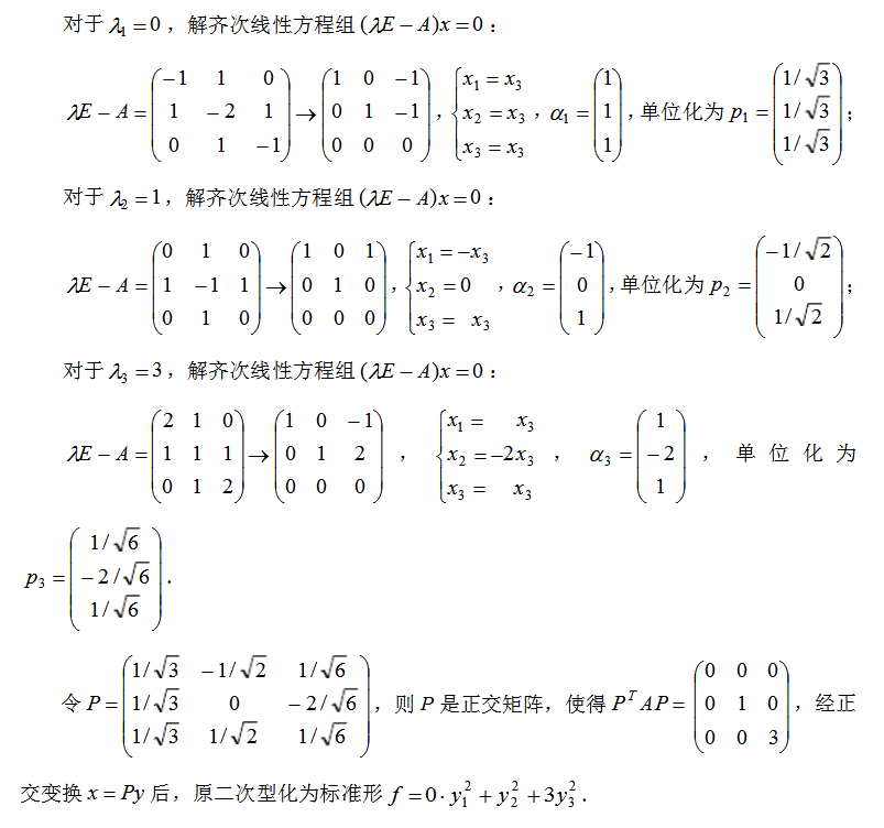 设3元二次型f(x₁,x₂,x₃)=x₁²+2x₂²+x₃²-2x₁x₂ -2x₂x₃,求正交变换x=Py,将二次型化为标准形. 作者:高老师 时间:2024-07-29 浏览 0 设3元二次型f(x₁,x₂,x₃)=x₁²+2x₂²+x₃²-2x₁x₂ -2x₂x₃,求正交变换x=Py,将二次型化为标准形.【正确答案】:【题目解析】: 📱 扫码体验刷题小程序 扫一扫使用我们的微信小程序