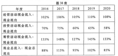 某公司2016年至2020年的现金流入和流出结构分析表部分资料如题38表所示。