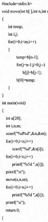 (1)编写函数int move(int b[],int n,int m),将整型数组b的n个元素循环右移m个位置。