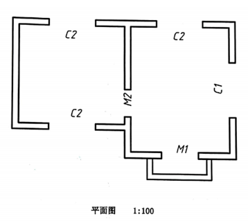 (5)画出所欠缺的门的图例(其中 M1 为双扇平开门,M2 为单扇平开门)。