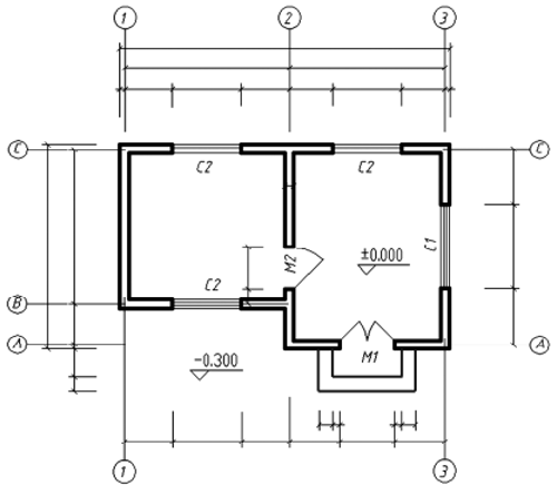 (3)标注室内外地面的标高符号(室外比室内低300mm) ; (2分)