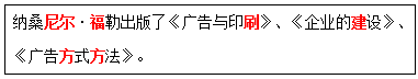 纳桑尼尔·福勒出版了《( )》、《企业的建设》、《广告方式方法》。 作者:高老师 时间:2024-08-06 浏览 1 纳桑尼尔·福勒出版了《( )》、《企业的建设》、《广告方式方法》。【正确答案】:广告与印刷【题目解析】:助记:尼尔福刷房间——刷房(方)间(建)。 📱 扫码体验刷题小程序 扫一扫使用我们的微信小程序