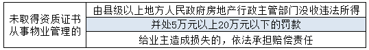 本题可从“未取得资质证书从事物业管理的”入手。相关规定如下: