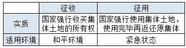 集体土地征收和征用的区别可以结合下表理解: