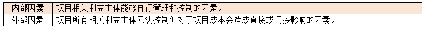 本题的关键在于区分影响项目成本的内外部因素,如下表: