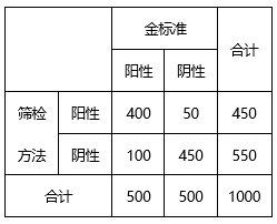 (2)灵敏度用公式表达为:SN=A/(A+C)×100%=400/(400+100)×100%=80%说明指在“金标准“确诊的乳腺癌病人中利用某实验检测出的阳性人数所占的比例为80%,说明此筛检方法的灵敏度较高,漏诊率不高。(P35)阳性预测值的计算公式可以表示为: PV+=A/(A+B)×100%=400/(400+50)×100%=89%说明在筛检测试阳性者中34.34%的病人被确诊为乳腺癌患者。(P40)(3)在灵敏度和特异度不变的情况下,随着患病率的升高,阳性预测值呈上升趋势。在相同患病率时,随着灵敏度的升高,阴性预测值上升,随着特异度升高,阳性预测值上升。(P41)